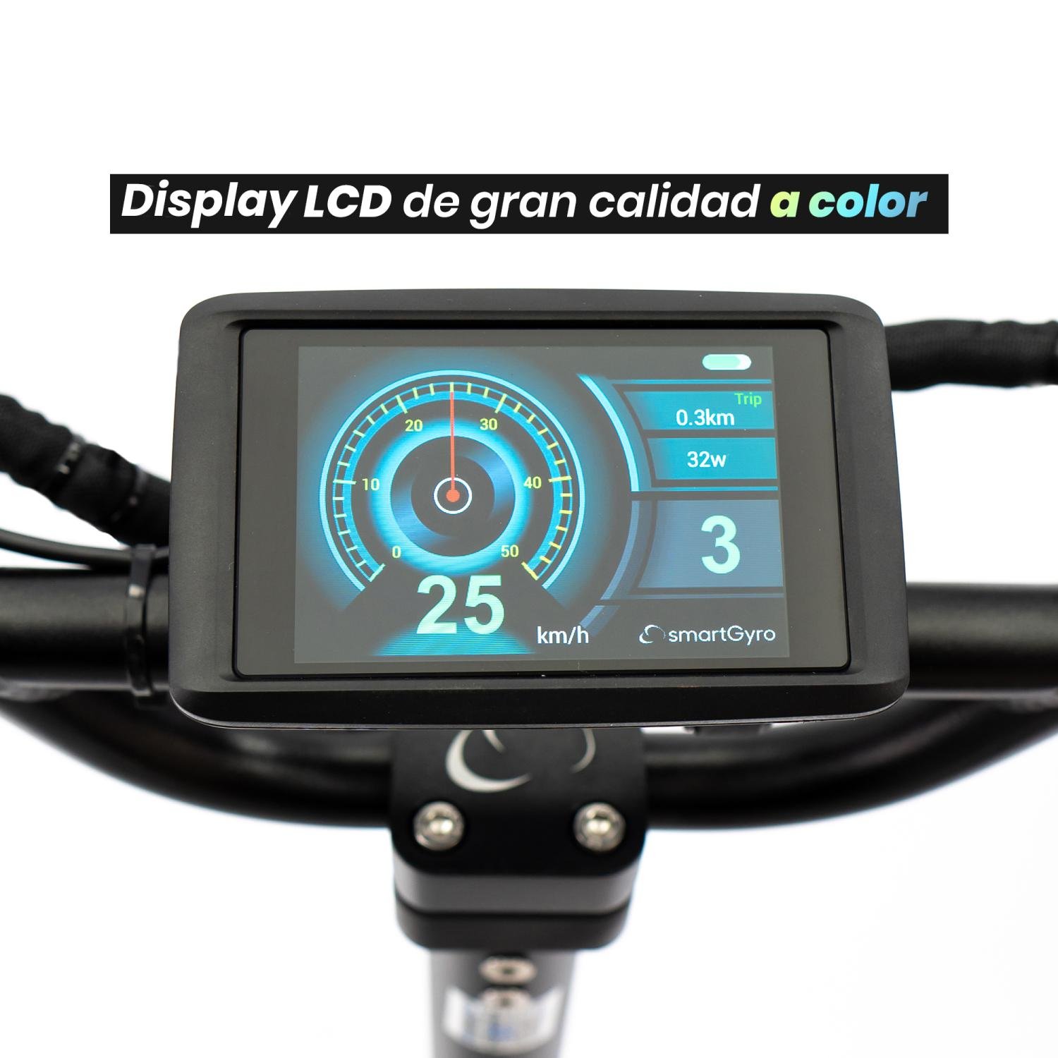 Gran display en color con multitud de funciones para adaptar el patín y tu manera de conducir como: número de marchas, indicadores en pantalla, diferentes unidades de medida y mucho más, además mejora la visibilidad durante la conducción y es espectacular por la noche. Incluso con el sol directo podrás ver la información sin quitar la vista de la calzada.